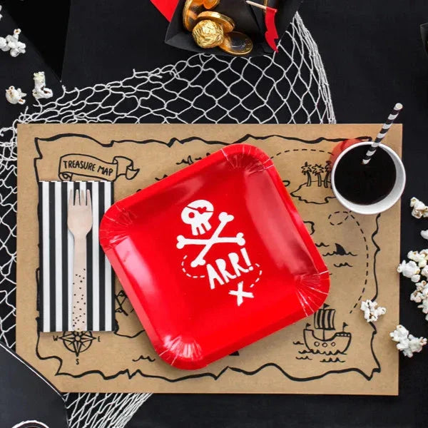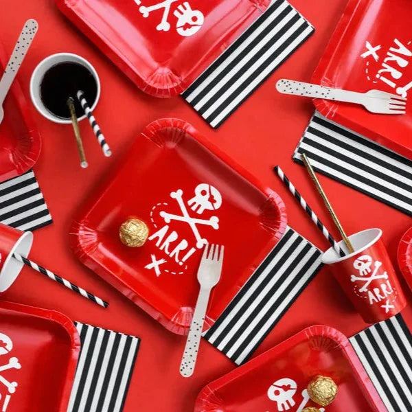 Papieren bordjes Pirates Party in rode kleur met witte opdruk
